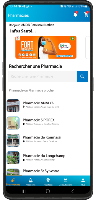 L'application coursier médical est une innovation dans le domaine de la santé numérique. Elle est une plateforme offrant un accès à son utilisateur 24H/24 & 7J/7 à tous les acteurs de la chaîne de valeur sanitaire que sont les médecins, les spécialistes, les cliniques privées, les hôpitaux, les officines de pharmacie voir les laboratoires. Elle est une solution de gestion de votre santé au quotidien.